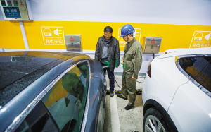 “这里是充电口,只要将电动汽车连接线插入就能充电。”昨天下午,在鄞州区华茂·悦峰小区地下停车库内,供电公司员工为客户讲解电动汽车充电桩的使用方法。这个地下车库一共1125个车位,260个车位后将安装充电装置。截至昨天,首批150个已经安装到位。