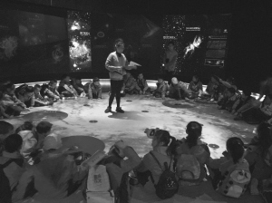 科探中心辅导员在介绍星系。 记者 徐叶 摄 |