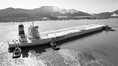 昨天下午3时许,亚洲最大原油码头——宁波舟山港大榭港区实华二期45万吨原油码头,首次迎来全球最大船舶“泰欧”轮。该轮此次装载33.96万吨原油,创下挂靠宁波舟山港单艘油轮实际装载量最大纪录。 大榭港区实华二期45万吨原油码头于2010年12月建成,2012年5月16日正式投产,为亚洲最大、中国首个正式投用的45万吨原油码头。“泰欧”轮于2002年建成,船长380米,宽68米,差不多有4个足球场大,目前载重吨为41.9万吨,是世界在航的最大载重吨级别船舶。 记者 范洪 通讯员 陈浩锐 海莎/文 通讯员 郑凯/摄