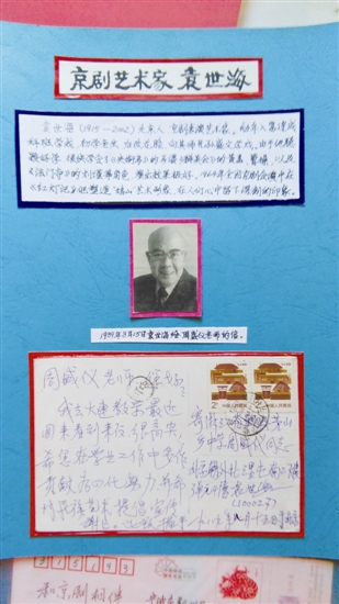 “我把这些演员的签名和戏单进行了整理,有空的时候翻一翻看一看,就觉得其乐无穷。”77岁的周盛仪是鄞州区姜山镇虎哨周村一位退休教师,同时也是一位收藏爱好者。他主要收藏门票、校徽和戏曲资料三类藏品。退休后,他一直利用自己的藏品办内部交流报刊和各种主题展览。2017年,他有个愿望:利用收藏的300多位戏曲演员的签名明信片和1500多张戏单,举办一次戏曲艺术主题展。 教师节前夕收到了吕瑞英的贺卡 幼时家境贫寒,周盛仪的艺术启蒙是乡间的戏曲表演,戏曲里演绎的家仇国恨故事总能打动他的心。 童年的时候,每每村头有戏曲演出,周盛仪总是早早赶到现场,偷偷地看演员们在后台化妆、排戏。演出结束散场后,他还觉得回味无穷,时不时地学着演员的唱腔唱上几句。 读师范学校时,周盛仪学会了拉二胡,还参加了学生社团。参加工作后,他订阅了《中国戏剧》杂志。除了喜欢宁波本地常见的越剧、甬剧外,他也喜欢京剧、昆曲等剧种,他觉得戏曲不仅很美,而且还蕴含着各种做人的道理。 尽管从小就喜欢上了戏剧,但是周盛仪最初收藏的并不是戏曲资料,而是邮票。他从16岁开始集邮,是越剧名家吕瑞英的一封信让周盛仪的收藏发生了变化。 周盛仪回忆说,1985年的暑假,他给自己喜爱的越剧演员吕瑞英写了一封信,收信地址就是上海越剧院,邮编是从邮局查来的。他在信中说自己喜欢越剧,也喜欢看吕瑞英表演的《打金枝》《穆桂英挂帅》等剧目,还组织学生们学习其中的选段,他希望越剧能够被发扬光大。1985年9月10日,是新中国的首个教师节。让周盛仪惊喜的是,吕瑞英在教师节前夕给他回了信,还寄给他一张明信片,祝他教师节快乐。 当时吕瑞英已经是上海越剧院院长了,她寄来的贺卡让周盛仪倍受鼓舞。尽管身处乡间,没有很多机会观看戏曲演出,但是自己可以通过写信的方式和喜爱的戏曲演员进行交流,收藏他们的签名!这让周盛仪兴奋了好几天。 30余年集得300多张签名明信片 茅威涛的签名明信片是1985年10月寄给周盛仪的,那时茅威涛才23岁,在前一年刚刚夺得了中国戏曲梅花奖; 王锦文的签名明信片是1990年5月寄达的,那时她刚在浙江省第四届戏剧节上崭露头角; 尚长荣的签名明信片和亲笔信是1992年3月寄达的,他的回信与众不同,是用毛笔写就的…… 30多年来,通过写信,周盛仪收集了60余个剧种的300多位戏曲演员的签名明信片。 今天的读者也许会有这样的疑问:一个普通的乡村教师怎么知道这么多戏曲演员的通信地址呢?周盛仪曾经统计过,1983年到2013年,文艺界有634人次获得了梅花奖。他至今还保存着一个黑色封皮笔记本,里面记载着一份演员名单,是他拥有签名明信片的91位梅花奖获得者,分为梅花大奖(三度梅)7人,二度梅19人,一度梅65人。周盛仪说,他首先在报刊上找到这些演员的工作单位,一般都是某某剧团或某某剧院,然后再到邮局查找这些单位的邮编,再加上演员的名字,有了这些信息后,演员们一般都能收到他写的信。 从1985年到1994年的近十年时间里,周盛仪给200多位戏曲演员写了信,其中有70%给他回寄了签名明信片。这是他收藏签名明信片的黄金时期。 从集邮开始,周盛仪就和全国各地的藏友相互交流,有位湖北的藏友知道周盛仪的爱好后,特意到当地一个濒临解散的地方剧团——采茶剧剧团请演员们签名,集齐该团所有演员的签名后寄给周盛仪。 如今,随着电脑、手机的广泛使用,艺术家和粉丝的交流方式越来越多样了,写信显得越来越不合潮流了,周盛仪收到的回信也大大减少了。2016年,周盛仪寄出了22封信,只收到2封回信;2017年1月,他寄出了4封信,一封回信也没收到。他收到的最后一封回信,是漳州市芗剧团演员陆逸红于2016年11月11日寄来的。 想利用藏品举办戏曲艺术主题展览 早在宋代,为了吸引观众,有些戏院把当天演出的节目写在“折子”上,来做宣传。这种“折子”是戏单的雏形。 真正意义上的纸质戏单出现在清末,看似简陋,却具有一定的史料价值和欣赏价值,也吸引了藏友的收藏。 有些戏曲演员在给周盛仪的回信中,除了签名明信片外,还附赠自己演出的戏单、剧照,甚至还有演出的音像资料。周盛仪的戏单收藏就是从收到演员的赠品开始的。 演员们赠送的戏单不多,后来,周盛仪用门票交换或购买方式,陆续从各地藏友处获得了一些戏单。到目前为止,周盛仪已经收藏了从上世纪50年代到现在的1500多份戏单。 在一些收藏网上,旧戏单的价格从几元到几十元不等,售价超过百元的戏单很少见。周盛仪说,戏单收藏的经济价值不高,但是不同时期的戏单或多或少都能反映出一些时代特征。比如戏单从单页单面发展到如今多页成册;从传统的手写、木刻、油墨手印、铅字排印,发展到如今的彩色胶印,其中的变化除了能反映各个时期的印刷技术和制作工艺水平,还能反映出戏剧的演变发展和演职员的艺术水准。 周盛仪希望利用自己的藏品举办一次戏曲艺术主题展览,让人们从这些实物中看到戏曲的发展历程,了解不同时代的戏曲演员。记者 陈爱红 文/摄 藏品共赏 1.尚长荣的亲笔信 1992年,周盛仪从报纸上得知京剧名家尚长荣从陕西调到上海后,就给他写信。没过多久,周盛仪不仅收到了尚长荣的亲笔回信,随信还获赠了一张尚长荣主演的《曹操与杨修》剧照。 尚长荣在回信中写道:您的来信早已收到,因我到外地演出及琐事繁忙