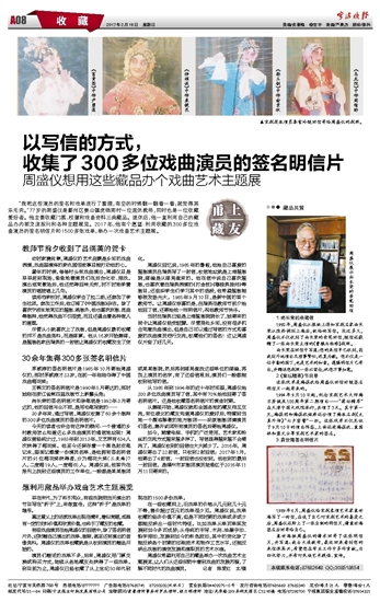 以写信的方式, 收集了300多位戏曲演员的签名明信片