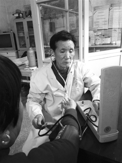 | 村医俞家兴为村民们量血压,已量坏5台血压计。 |
