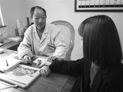 | 80岁的王官良坚持每周坐5天门诊。 |