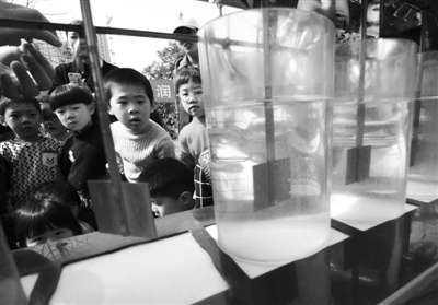 市自来水总公司的技术人员近日走进鄞州周宿渡社区幼儿园,向小朋友及家长介绍自来水的制水流程以及饮用水、内河水、江水的质量现状,希望孩子们从小树立保护水质、节约用水的环保理念。