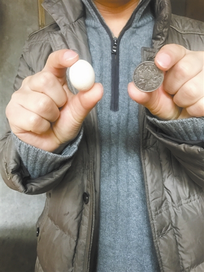 “我外公给我送来的鸡蛋中有一个蛋好‘迷你’,比鹌鹑蛋还小很多!”昨天,家住梅墟的豆豆小朋友报料称,外公养的土鸡下了一颗很“迷你”的小鸡蛋,他想和大家分享下。 仅2.9克重,几乎看不到蛋黄 昨天下午,记者来到了豆豆家。豆豆小心翼翼地用碟子捧出了这个鸡蛋——果然很小。 具体多小呢?和普通鸡蛋比,简直是“小矮人”碰上“大块头”。和鹌鹑蛋比,个头也明显小了一圈。 豆豆妈拿出直尺和珠宝秤和记者一起做了具体测量——迷你蛋的“身高”只有2厘米,“体重”只有2.9克。豆豆妈又从冰箱里拿出其他几个外公送来的土鸡蛋,普遍体重在48克至55克之间。 “我好想做个纪念,也很好奇这个蛋里面是什么样子。”犹豫再三后,豆豆让妈妈打破了这个蛋。记者注意到,体重不足3克的“迷你”蛋打开后,蛋清的量很少,几乎没有蛋黄,只有隐约头发丝粗细的几缕黄色。 记者电话联系了远在台州的豆豆外公,说起这个“迷你”蛋,他笑着说:“我今年60岁了,也是第一次见到这么小的蛋。周边邻居也都说没见过。” “迷你”蛋背后是浓浓的爱 原来,豆豆外公外婆住在台州,都在事业单位上班,虽然家里住在镇子上,但一直都没有种地或养鸡。 “我爸妈很爱干净,家里一直没养鸡。我怀了豆豆后,他们就开始了养鸡大业,说自己养的土鸡蛋更放心也更有营养。他们专门在家旁边整理出一块空地,搭了架子、张了网、砌了鸡窝,甚至还在靠墙的地方搭了个简易的亭子。一开始,养了4只鸡,后来我怀二胎了,养鸡的规模又扩大了很多。现在,一共养着10只芦花母鸡,4只公鸡。”豆豆妈说。 “这些都是外公给我们寄鸡蛋的纸盒。”豆豆领着记者去看了堆在储藏室一角的鸡蛋包装盒,足有半人高。据介绍,豆豆外公特意从老家的中学食堂要了鸡蛋包装盒,每半个月,就把鸡蛋一个个装好,拎到宁波来或请人带到宁波。 “我们让老人家自己也吃些土鸡蛋,可他们嘴上答应了,实际上总不舍得,一定要送到宁波给孩子们吃。”豆豆妈说,老人是用土鸡蛋这种朴素的形式来表达对孩子们的爱。 记者查询资料后了解到,“迷你蛋”的情况并不多见,可能是母鸡的输卵管在输送蛋黄、蛋壳物质时,受到惊吓、干扰等外部环境影响而缩回体内,最后产出了“迷你蛋”。虽然并不属于畸形蛋,但专家建议,为保险起见,最好不要食用。记者 王颖 文/摄