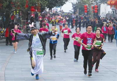 2017中国·奉化海峡两岸山地桃花马拉松昨天完赛。赛道上“寻找心中的桃花”横幅,处处可见的粉红色比赛服,以及一个个头顶桃花花环的跑友……种种细节纷纷佐证着这是场异常浪漫诗意的马拉松。 比赛设置全程马拉松、半程马拉松以及欢乐迷你跑3个组别,共有4000余名选手参加。他们沿途有桃树、桃花相伴,全程组路线更是穿越溪口和滕头风景区两个5A级景区,经剡江沿岸、泉溪河畔、天下第一桃园、曰岭等处,一路伴随的是溪流、桃花、山丘、古村落等生态景致。 作为第二届赛事,桃花马拉松继续秉承海峡两岸运动爱好者在赛道上携手同跑的赛事特色。来自中国台湾的跑者周青告诉记者,他和42名队友结伴而来,自己是首次来到奉化。“台湾跑步和铁人三项都是热门运动,没想到这边跑步也这么火热。”他说在这里感觉气候特别舒服,“比赛结束会逗留几天仔细走走看看”。 女将杨雅雯也是第一次来,她是在去年来参赛过的跑友推荐下报名的。“去年跑过的朋友说风景很好,当然就想来啦。来之前我做了点功课,了解一下这边的人文地理,尤其是名产,比如芋艿、水蜜桃。”她说这个季节有花无桃,希望下次和家人一起再来旅游品尝。 马拉松活动是一座桥梁,而在此之前奉化以海峡两岸交流基地、雪窦山为依托,早已开拓不少两岸民间交流新载体,举行过“两岸弥勒文化研讨会”、“两岸青年成人礼”、“海峡两岸桃花马拉松”等一系列有影响力的交流活动,增近了两岸民众的文化认同感。目前奉化已成为台湾游客的重要旅游目的地,去年接待台湾游客27万人次。 桃花灼灼,古装添彩有意趣 对于一场数千人参与的大型赛事来说,绝大多数选手都不是为了名次而是重在体验。昨天比赛队伍中一个古装打扮的团队很受关注,他们是欢乐迷你跑的官方“桃花兔”,男、女各11人。网名为“习惯”的美女笑称,“好多人说我们穿的是仙女服”,另一名来自溪口的“桃花兔”康芳芳则对记者说:“这应该是《三生三世十里桃花》电视剧里的古装服,主要是想给活动增加浪漫气氛。” 昨日的比赛满眼桃花色,沿途多桃园,奉化本土跑友们很为这项独具特色的马拉松感到自豪,当地“悦跑团”溪口小分队的选手王明明说:“我们小分队有80多个人参加比赛,大家平时都经常在这条赛道上夜跑,朋友带朋友,参与的人越来越多。”王明明说自己参加马拉松赛事以来所获得的完赛奖牌,已经伸开双臂都可以挂满,“不过我始终偏爱参加浙江省内的赛事,环境普遍不错”。 本次赛事活动中,还有“桃花缘,相约奉化”、“桃花见证,情定今生”等系列活动,也为情侣跑友、家庭团队增添不少浪漫的幸福感。 记者 戴斌 通讯员 黄成峰 严世君