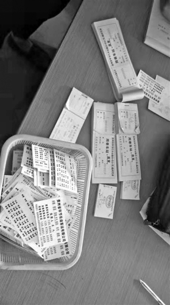 | 执法人员查获的各种票据。 |