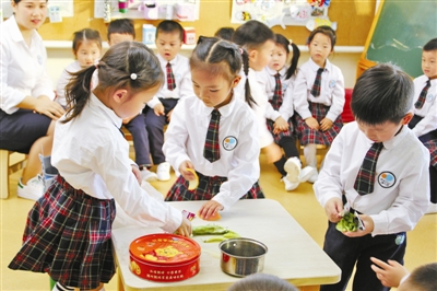 德培幼儿园的孩子们在上垃圾分类课。 |