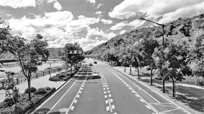 作为《徐霞客游记》的开篇地,宁海充满了诗意与浪漫情怀。 集休闲、娱乐、商业于一体的徐霞客大道,是宁海的文化地标,于2004年6月竣工。 现在的徐霞客大道长1650米,宽43.5米,其中主车道宽15米,为沥青砼路面;路南边的绿化景观带宽25米,路北边的人行道宽3.5米。 徐霞客大道南侧是花团锦簇的园林绿化景观带,其间芳草萋萋,绿树成荫,藤萝叠翠,喷泉吐珠。一道蜿蜒的城墙,是缑城古老的回忆;三组徐霞客石雕,是旅游文化的溯源。潺潺的洋溪从西往东而来,在大道南面的防洪堤外汇成悠悠的清潭,为徐霞客大道平添了一分灵气。 北侧是仿明清建筑群,青砖黛瓦,飞檐翘角,鳞次栉比的茶楼店铺,渲染着现代的悠闲和繁华。 与徐霞客大道隔溪相望的,是五步一亭、十步一阁的飞凤山公园。“江南一绝、中国无双”的十里红妆艺术馆坐落在徐霞客大道的东头。一条大道串联起宁海的文化基因与地域风貌,被称为“宁海小外滩”。 值得一提的是,徐霞客大道位于宁海城南片区,这是一块富有传奇色彩的土地。1988年的“7·30”洪灾留下了满目疮痍,倔强的宁海人从废墟中爬起,擦干眼泪,重建家园。2000年至2005年的“十五”期间,徐霞客大道出世,飞凤山公园崛起,老南门铁桥变成新跃龙大桥。2006年至2010年的“十一五”期间,宁海发展战略把“南改”放在首位,兴宁南路打通,跃龙山桥拆倒重来,徐霞客公园众人夸……近年间,宁海又按照“十三五”目标,城南片“再提升”,兴宁廊桥、老化肥厂地块改造、洋溪亲水平台、徐霞客大道西延伸段……令人目不暇接。