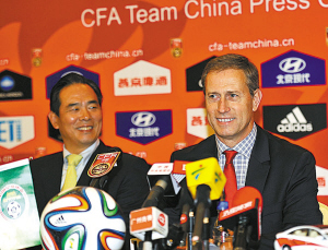 新华社广东清远2月28日电(记者王浩明 公兵 郑道锦)中国足协28日在此间举行新闻发布会,正式宣布法国籍教练阿兰·佩兰出任中国男足国家队主教练,佩兰成为国足第八任外籍主帅。 国家体育总局副局长、中国足球协会主席蔡振华,主管国家队事务的中国足协副主席魏吉祥和佩兰共同出席了发布会。发布会上,佩兰用一口流利的英语完成了开场白后,表露了自己执教中国队的目标———进军2018年世界杯。 “我非常高兴和骄傲加盟中国队,感谢足协主席蔡振华先生,感谢足协所有的工作人员最终决定将这份使命赋予我。我将带着我的足球理念与中国的足球人一起努力工作,目标就是2018年世界杯佩兰说。 在谈到3月5日亚洲杯预选赛的临场指挥问题时,佩兰表态愿意进入替补席,协助现任代理主教练傅博的工作,也就是说,3月5日后佩兰才将正式接管国家队的训练和比赛。 发布会上,足协相关负责人士拒绝透露合同期限、工资水平等细节。但魏吉祥表示,合同中明确了佩兰的考核标准,且他的工资水平远远低于卡马乔。 “目标也不单单是2018年世界杯,世界杯外制定了综合性的考核体系,包括国际排名的提高、亚洲杯赛的成绩、热身赛的胜率、队员在场上技战术的进步、进球率、整体防守等,这些方面都是全面考量执教水平的科学体系。因此,我们的合同是一个完善的合同。薪水需要保密,但可以说佩兰的薪水符合欧洲一线主教练的薪资水平,但远远低于卡马乔的水平。”魏吉祥说。 发布会上,蔡振华将一件新版国家队队服赠送给佩兰。蔡振华表示,国家队成绩的提高不能仅仅依靠一名外教的力量,根本还是要抓好自身工作。“国家队水平的提高不是一日之功,相信新教练的上任会产生积极的影响,也期待媒体朋友、社会各界给予新教练积极的支持,”蔡振华说。