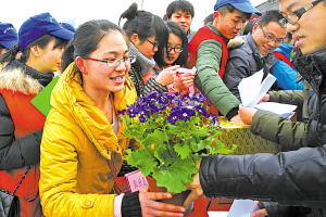 | 昨天上午,市城管局园林绿化部门在庆安公园举行绿地认养认管签约活动。图为市民在踊跃认养盆栽植物。(胡建华 摄) |