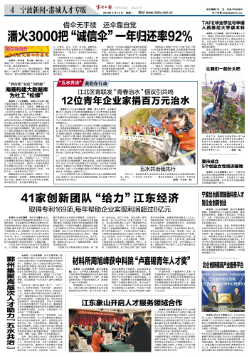 江北区青联发“青春治水”倡议引共鸣 本报讯(江北记者站吴红波 顾筠 通讯员刘平 记者余方觉)近日,牧高笛公司总经理陆暾峰通过江北区青年联合会捐款10万元,用于“五水共治”。陆暾峰是青联委员,前些天来江北考察汽车露营项目投资事宜时,发现一些河道不再像以前那般清澈。刚巧,江北团区委、江北区青联正在开展“青春治水”行动,他当即决定捐款治水。 眼下,江北区正按照省市“五水共治”的部署,迅速掀起治水热潮,共建美丽品质新家园。江北团区委和江北区青联第一时间响应,通过书信、短信等多种形式,向青联委员和青年企业家发出倡议:积极行动起来,从我做起,带头捐款,出钱出力,共同推进“五水共治”,为保护江北青山绿水、建设美丽品质新江北贡献力量。 倡议发出后,青联委员积极响应。浙江运通旅行社有限公司当即捐出了5万元“治水款”。这家公司的企业服务经理人恰好是江北团区委的负责同志。之前,该公司在发展过程中碰到的许多难题,都是靠企业服务经理人及时协调才得以解决。“‘五水共治’是一项优化人居环境的大好事,我们出点力也是对政府服务的一种回报。”总经理童伟标说,这钱花得实在,用在了老百姓的心坎上。 在去年“菲特”台风期间,从事外贸业务的梁英国际公司总经理王东向重灾区慈城捐赠了2000条毛毯,并随车送到受灾群众手中。因此,对于参与过抗洪救灾的王东来说,“五水共治”具有特殊意义。当得知江北区青联的“青春治水”行动后,王东也送来了“治水款”。目前,江北区青联已收到12位青年企业家送来的“青春治水”专项资金,总额近百万元。 江北区青联负责人说,区青联委员的企业绝大多数属初创型企业,规模不大,但大家为治水捐款热情高涨,充分体现了青年企业家社会责任与担当。