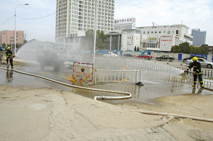 幸无人员伤亡 本报讯(记者单玉紫枫 周琼 通讯员刘伟宏)昨天上午9时14分许,在中山东路与福明路交叉口,施工人员操作挖掘机时,不慎挖破燃气管道,消防队员紧急疏散附近群众,燃气公司抢修近一个小时,现场幸无人员伤亡。 事故地点位于宁波市第六医院旁,来往车辆较多。据附近居民介绍,当时一个施工队在中山东路与福明路的交叉口施工,因为操作不慎,挖破了燃气管道,工人与燃气公司联系并报了警。 上午9时22分,江东消防大队官兵赶到现场后,发现刺鼻的煤气味已弥漫了整条道路,泄漏点仍不停发出“咝咝”响声。 现场指挥员立即下令,由一部分官兵紧急疏散人群,在现场拉起了警戒带,另一部分官兵对事故现场周围的店面挨家挨户提醒人们切断电源,熄灭明火。攻坚组佩戴空气呼吸器用水枪向泄漏的燃气管道进行稀释。 9时30分,燃气公司工作人员赶到现场,将燃气总阀关闭。泄漏的气体压力开始减小,消防官兵们继续用水枪向泄漏的管道喷洒。直到10时21分,抢险救援工作才告结束。部分店面被迫暂停营业。