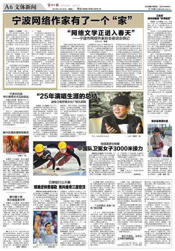 本报讯(记者陈青)“今年1月,浙江省刚成立全国第一家省级网络作家协会,在这么短的时间内,宁波又率先在全省成立了第一家市级网络作家协会,真是喜事不断。”昨天,省作协党组书记臧军在宁波市网络作家协会成立暨第一次会员大会上这样说。 据统计,我省目前活跃在国内主要网络文学网站的网络作家和写手有900余人,其中出现了南派三叔、流潋紫、沧月、曹昇、燕垒生、陆琪、天蚕土豆、烽火戏诸侯、桐华等一批在全国很有影响的网络作家,他们造就了浙江网络文学在全国的领跑地位。 宁波的网络文学近年来也蓬勃发展,活跃在国内主要网络文学网站上的宁波籍作家有40人左右,苍天白鹤、阿耐、雁无痕、中华杨、在南方的毛豆等已在网络上成名,其中苍天白鹤获得2013年度中国网络作家富豪排行榜第13名。网络财经作家阿耐的小说《大江东去》、《回家》、《不得往生》等作品在网络上引起较大反响,作品还曾获全国“五个一”工程奖。 市作家协会主席荣荣昨天有了一个新的身份———市网络作家协会首任主席。“网络文学工作是一项全新的工作,没有现成经验和做法可循。”荣荣表示,市网络作家协会成立后,将更好地团结和引导广大网络文学工作者,及时成立相应组织,积极开展一些旨在提高网络写手写作水平的活动,改变网络作家各自为战、一盘散沙的局面,促进我市网络文学乃至整个文学领域的创作。 “争取政策和资金扶持,抓好网络文学基地建设,设立网络文学重要奖项———‘华语网络文学双年奖’,开展作家培训,展开研究评论和保护会员权益等,把市网络作家协会建设成为团结和谐、充满活力的网络作家之家。”根据荣荣所谈的工作计划,未来三年,我市将出现一支素质优良的网络文学工作者队伍,推出一批网络文学创作和研究方面的优秀成果,开辟若干网络文学创作和研究阵地,打造若干网络文学创作、研究、评奖和交流方面的活动品牌。 “网络文学的低门槛让更多作者和读者接触文学”,“网络作家和传统作家的界限越来越模糊”,“网络上也有富有艺术性、文学性的好作品”。昨天,宁波市网络作家协会成立后,数十名我市网络作家举行了文学座谈会,浙江省网络作家协会副主席、评论家夏烈,省内著名网络作家天蚕土豆、烽火戏诸侯和我市网络作家苍天白鹤、中华杨、在南方的毛豆以及起点中文网高级编辑在座谈会上一致表示:网络文学越来越受到重视,正在进入一个创作的春天。 宁波市网络作家协会是全国成立的第一家地市级网络作家协会,与会的我市网络作家将协会的成立视为网络文学发展的一个积极信号。市网络作家协会副主席、起点中文网白金作者苍天白鹤(陆晓宁)说:“以前,网络作家闷头在家写作,太孤单,也难以进步。网络作协的成立,能帮助作家互相学习创意,一起碰撞灵感。”开创网络军事架空文学先河的中华杨(杨筱栋)从事网络文学10多年,是起步最早的一批网络作家,他也认为,网络作家可以通过内部论坛进行交流,通过内部刊物相互学习。大家期望,随着网络作协的成立,在有关部门的扶持下,网络作家的艺术水准将得到进一步提高。 起点中文网高级编辑沧沧(张磊)在座谈会上表示,传统的作家协会接受网络作家证明了社会对网络文学、网络作家的承认。沧沧说:“起点中文网目前越来越重视网络文学的文学性、艺术性,此前网络文字过于追随市场潮流,形成了固定的套路、模式,小说动辄数百万字。但近两年来,起点中文网开始大力开发中短作品,推出了单行本频道,主推3万字到20万字的作品。故事性永远是网络文学的生命力,网络文学已越来越紧密地和传统文学相结合,目前已经有上海世纪出版社等三四家出版集团、杂志社加盟。网络文学与传统文学的结合将成为出版市场新的赢利点。” 宁波市网络作协副主席在南方的毛豆(王路)是传统作家涉足网络文学的代表,作为中国作家协会会员,此前他以创作青春文学和儿童文学为主,2012年起,在起点中文网创作长篇科幻文学《生化末世的幸福生活》,目前已有400多万字,在科幻类作品中排名第24位。他表示,网络文学刚刚起步时有很多缺陷,在传统文学界看来,优秀作品相当少,甚至有人认为网络文学都是垃圾。但是,随着近几年的发展,高质量的网络文学作品越来越多,中国作协、浙江省作协都出台了针对网络文学的评奖和扶持政策。与此同时,网络读者群也在飞速成长,对作品的文学性、艺术性要求越来越高。越来越多的网络作家开始出实体书、作品改编成电视剧,而越来越多的传统作家开始把自己的作品上网,在可预见的未来,网络文学与传统文学将会进一步交融,给读者提供更多的优秀作品。 昨天与会的网络作家也指出,当前网络文学面临的最大问题就是盗版,如中华杨创作的《中华再起》在全国热卖,其实全是盗版,他没收入一分钱。网络作家希望今后可以借助网络作协这个组织,更有效地打击盗版,帮助网络作家维权。