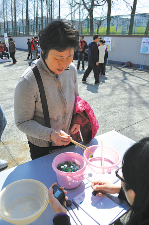 3月15日下午,由市体育局、市体育总会和海曙区教育(体育)局、区体育总会主办的“公益体彩·快乐体育”走进社区活动在万安社区篮球场举行,来自该社区的100多名居民参与了快乐跳绳、趣味保龄球、乒乓绕杆、巧取龙珠、年年有鱼、滚铁环等8个趣味体育项目的活动。图为活动中的镜头。(林海 张炼 摄)