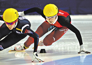 据新华社华盛顿3月16日电 在加拿大蒙特利尔举行的2014年短道速滑世锦赛16日进行了最后一天比赛,刘秋宏、孔雪、范可新和韩雨桐组成的中国队在女子3000米接力项目上成功卫冕,从而使中国短道速滑军团以2金1银1铜的成绩完成本届比赛。 这也是中国队在女子3000米接力项目上的世锦赛四连冠。在决赛中,中国队与韩国队展开了激烈争夺,在倒数第二圈,韩国队的沈石溪与中国队的范可新发生身体接触,韩国队首先冲过终点,中国队第二个完成比赛。但裁判在看过比赛录像之后认定韩国队犯规,冠军最终归属到了中国队名下。 在16日结束的其他比赛中,俄罗斯队的韩裔名将维克托·安和韩国队的沈石溪分别夺得男、女1000米冠军,男子5000米接力冠军被荷兰队夺走。维克托·安和沈石溪还分别夺得了男、女全能冠军。 左图:3月16日,中国队选手韩雨桐(右)在比赛中。 (新华社发)