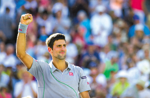 3月16日,焦科维奇在比赛后庆祝胜利。(新华社发) 据新华社美国印第安韦尔斯3月16日电(记者郭爽)在16日进行的巴黎银行网球公开赛男单决赛中,塞尔维亚名将焦科维奇苦战三盘以3:6、6:3、7:6(3)艰难逆转,击败瑞士“天王”费德勒,第三次赢得这一赛事的冠军。这是其职业生涯的第42个冠军,也是他今年首冠。 首盘比赛,率先发球的赛会7号种子费德勒在对手的第一个发球局就实现破发,并凭借这个优势以6:3先拔头筹。次盘比赛,现年26岁的焦科维奇在第八局实现关键破发,以5:3迎来发球胜盘局,并如愿以6:3将大比分扳平。 决胜盘第一局就十分激烈,经历多次平分后“老天王”费德勒才艰难保发。第三局,费德勒在挽救了两个破发点后,还是因为一记正手进攻失误被焦科维奇破掉一局。此后两人各保发球局,焦科维奇以5:3领先。背靠悬崖的32岁老将费德勒顶住压力,先在非保不可的发球局打出love-game(对手未得分),接着又破掉对手的发球胜赛局,把局分扳成5:5。在最后的抢七争夺中,塞尔维亚人利用对手失误,迅速将比分带入3:0、5:1,最终以7:3的小分斩获冠军。 焦科维奇在颁奖仪式上说:“这是一场难以置信的比赛,跟费德勒比赛是巨大的快乐。期待在赛季剩余比赛中与费德勒继续一起打球。” 整场比赛进行了近2小时13分钟,双方各自打出6记ACE球(发球直接得分且对方未触到球)。在双误方面,焦科维奇以5:4比费德勒多一个。 在加州小镇印第安韦尔斯举行的巴黎银行公开赛是一项硬地赛事,也是四大满贯之外最重要的顶级网球赛事之一。