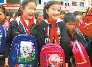 外来娃喜领“爱心书包”