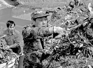 | 日前,宁海县力洋镇文正、前横、小青等村的300余名干部群众对流经这几个村的横直河进行整治。自去年起,力洋镇发动3万多名群众共同参与全民治水行动。目前全镇18个村排摸的40余条黑河、臭河、垃圾河已完成治理24条。(李江林 严龙 陈云松 摄) |