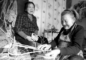 图为汪秀清在编织草鞋。 (索向鲁 金旭孟 厉晓杭 摄) |
