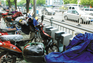 公共自行车网点被电动车“侵占”。(沈孙晖 摄) 本报讯(记者沈孙晖 实习生侯沁言)公共自行车网点旁开着几家店,结果顾客直接将电动车、自行车停在网点上,“我们想借车、还车都进不去!”前天傍晚,江东一位贾女士在微博上“吐槽”,反映百丈东路与桑田路交叉口、东柳菜场对面的一个公共自行车网点被“鸠占鹊巢”。 贾女士告诉记者,连续几天下午4时至6时,她路过东柳菜场对面的公共自行车网点,均发现这里被电动车、自行车包围,“要借车、还车只能费劲把占道的车搬开,或者跑到马路对面的网点去。如此恶性循环下去,这个租借点等于是个摆设。” 为何会冒出许多电动车、自行车“占地盘”?贾女士道出了答案:该网点旁开了一家中式快餐店和一家小商品直销超市,其中那家快餐店几天前刚开业,在搞打折活动,所以近期一到吃饭时刻,这边就“顾客云集”。 昨天下午1时左右,记者来到实地查看。虽然此时已过正常饭点,但快餐店、小商品超市门口的公共自行车停放位,大部分仍被电动车等“霸占”。记者在现场逗留了10多分钟,发现不少客人为图方便,直接将电动车停在公共自行车点上,锁个电子锁就自顾自去用餐或购物了。 昨天,“江东发布”官微就此事作了答复:根据东柳街道回复,由于这里新开了一些店面,客流量增多,街道和相关社区已联系店面老板,劝导顾客停放自行车、电动车时,不要影响公共自行车使用。 “我们在日常巡检中已发现该网点的问题,前两天特地派人去劝阻乱停车的市民,但收效甚微!”市公共自行车服务发展有限公司的史科长表示,公共自行车网点被“鸠占鹊巢”的情况比较常见,“但我们发现后只能劝说,没权利去赶。” 史科长说,他们就这个问题正与城管部门对接,但因缺乏相关政策,目前也没啥有效办法。为此,他呼吁广大市民文明停车,呵护公共自行车的发展。
