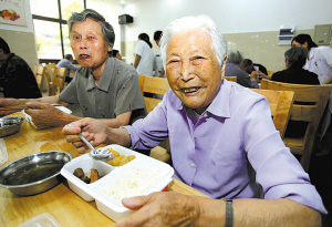 | 图为老人们在宽敞的餐厅用膳。(胡建华 陈栋 摄) |