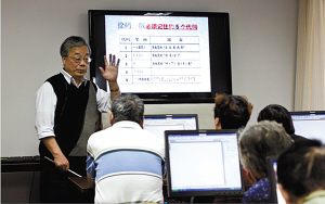 | 图为徐复来老师正在为老年人讲解徐码输入法。(陈巨国 摄) |