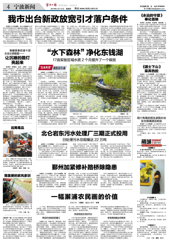 本报讯(记者厉晓杭 北仑记者站陈张坤 通讯员胡维维)近日,总投资约2.4亿元,占地面积34.5亩的北仑区岩东污水处理厂三期工程正式投入使用。加上此前岩东污水处理厂一、二期已形成的16万吨/日的处理能力,该厂实际处理能力已达到22万吨/日,约占北仑区日处理污水能力的1/3,有效缓解了该区污水总量不断增加的压力。 据悉,岩东污水处理厂三期工程位于一、二期项目与再生水厂之间,采用卡鲁赛尔氧化沟作为主体处理工艺,该工艺运行稳定可靠,可在连续超负荷运行的情况下,使出水水质达到并优于《城镇污水处理厂污染物排放标准》二级排放要求。该工程主要处理该区中部城镇和部分农村区域的工业、生活污水,经处理后的污水部分作为再生水直接回用。岩东污水处理厂自运行以来,严格工艺运行管理,近年来污水处理达标率始终保持100%,多项出水指标实际达到一级A标准。 据介绍,目前,北仑区建成的污水处理厂有4座,加上企业自建的处理设备,日污水处理能力达58万吨,再生水生产能力达15万吨,污水管网覆盖率和日污水处理能力均居全省前列,再生水生产处于全国领先水平。