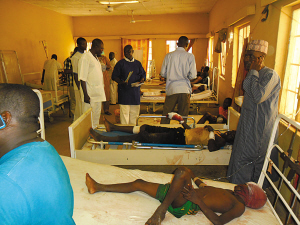 6月18日,几名受伤的球迷在尼日利亚达马图鲁的医院中。 (新华社发) |
