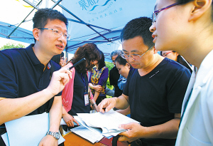 | 高校招生咨询会现场。(胡建华 胡斌 摄) |