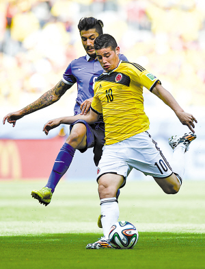 每届世界杯都不乏天才或妖人大放异彩,本次的领衔主演非詹姆斯·罗德里格斯(前)莫属。身披10号球衣的罗德里格斯率领哥伦比亚队历史性地杀入八强。5场比赛6粒进球,未满23岁的罗德里格斯目前仍独占射手榜榜首之位。这名摩纳哥队的法甲MVP向世界宣告了“J罗”时代的到来。