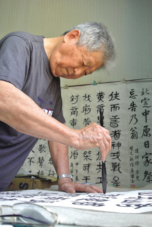 在鄞州区姜山镇菜场新村有位82岁的老人,叫徐庭苗。别看老人年过八旬,但好学的劲头一点也不比年轻人差。推拿、打拳、舞剑、学电脑、下象棋,还会一手漂亮的书法……老人说年纪大的人就怕没事做,他现在每天都安排得满满的,还感到时间不够用哩!