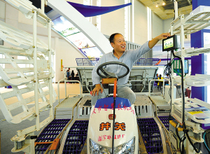 | 昨天上午,高交会上,鄞州麦谷农业科技有限公司张方明博士正在介绍插秧机无人驾驶系统。(严龙 张彩娜 摄) |