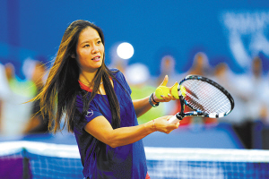 九月二十三日,李娜在仪式上将自己签名的网球赠给看台上的球迷。 当日,中国著名女子网球运动员李娜在家乡武汉举行退役致别仪式。本月十九日,李娜通过社交网络宣布退役。 (新华社发) |
