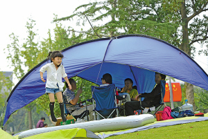▲昨日天气晴好,不少家庭自带帐篷来到公园,享受惬意时光。