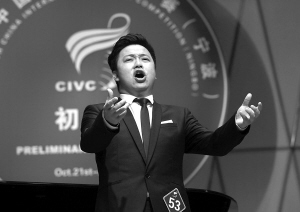 昨天下午,第六届中国国际声乐比赛初赛台上,宁波参赛选手蔡飞一展歌喉。 (记者 周建平 摄) 本报讯(记者陈青)国际声乐比赛昨晚在宁波音乐厅举行最后一场初赛。在本届声乐比赛中,宁波有7名选手报名参赛,入围比赛的唯一一名本土选手、来自宁波外事学校的声乐老师蔡飞昨天下午出战。 “包忘拿了,这就是紧张的表现。”蔡飞结束比赛后在音乐厅通道接受记者采访时说,“估计谁上台都没有不紧张的。今天应该说是正常发挥了,有两个小错误,但我还是对自己的表现满意,我的任务完成了。” 蔡飞毕业于四川音乐学院,专业学的就是声乐。昨天下午的比赛,他演唱了亨德尔的《你们要安慰,安慰我的百姓》(《弥赛亚》)、莫扎特的费尔兰多的咏叹调《从宝贝那儿送来这爱情的风》(《女人心》)、舒伯特的艺术歌曲《魔王》。 “第一首曲子是开嗓的,可以让情绪上来,评委看你技术有没有松弛。”蔡飞介绍了他所选的三首曲目。对于费尔兰多的咏叹调《从宝贝那儿送来这爱情的风》,蔡飞相当熟悉。2006年,蔡飞赴欧洲参加“纪念莫扎特诞辰250周年”活动,在歌剧《女人心》的演出中唱男高音。“第三首舒伯特的《魔王》难度很大,有父亲、魔王、小孩、旁白四个角色,平常不敢碰,这次拼一把,挑战自己。尽管比赛中有点小错误,但我自己原谅自己了。”蔡飞说,《魔王》对伴奏来说也是很难的,因为一直是震音,“很考验演唱者和钢琴伴奏的配合默契度,我以前和孙铭澧合作过,没想到他就是大赛指定的伴奏之一。” 比赛结束,蔡飞和妻子通电话说比赛情况,“没人来看我比赛,大家都很忙。老婆、孩子有演出任务,学校里的同事、学生在排练节目。其实,我在比赛中怕看到熟人,容易走神。在台上,就怕突然脑子一片空白,忘词,节奏跟不上。” 对于比赛,蔡飞一直抱着平常心。“学音乐这么多年,心态也发生了变化,这次在家门口参加比赛就是享受音乐。能进第二轮当然好,不能进也是学习和成长的过程。” 蔡飞告诉记者,在宁波外事学校带了20多个学生,他和同事把一首流行歌曲改编成了美声唱法,“就像杨洪基老师演唱美声版《小苹果》教老人防跌倒一样,演出效果挺好的,这样可以让声乐贴近普通市民,越来越多的人会感觉美声其实真的非常好听。”