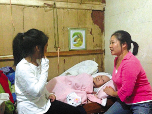 | 图为董江珍(右)在照顾婆婆。 |