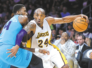 | 11月9日,湖人队球员科比(右)在比赛中带球突破。(新华社发) |