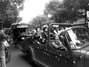 本报讯(记者曹爱方 通讯员陈丹)昨日上午9时,一辆辆花车上坐着不同年龄段的游客,在镇海志愿者的帮助下,从镇海区人民公园出发,沿着南大街、沿江西路绕行。花车由鲜花装扮的敞篷车、三轮车和自行车等三类创意花车组成,其中三轮车10辆,自行车15辆。三轮车除巡游外还将乘坐的游客载至镇海招宝山景区等旅游景点游玩。 这个名为“2014年镇海旅游金秋季之‘菊香·花车行’”活动,是镇海风景旅游局对赏花旅游的一次创新。该活动依托在镇海区人民公园举办的菊花展,借力巡游的规模效应,将静态的观菊赏菊与动态的花车巡游合二为一,通过花车动线释放赏花信息,以赏花之名参与互动活动,做到“花不醉人人自醉,花不请人人自来”。 据悉,此次活动以“花在镇海,爱在镇海”为主题,通过花车巡游、创意摄影、坐花车赏秋菊游美景的系列活动,将市民对花的爱美之心和惜美之情融入休闲活动之中,丰富市民的周末生活。 图为花车巡游。(曹爱方 摄)