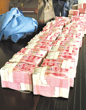 36叠“百元大钞”,其实中间均是冥钞。 (警方提供) |