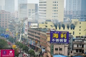 | 2月6日上午,发生火灾的惠东县义乌商品城仍在冒烟。(新华社发) |