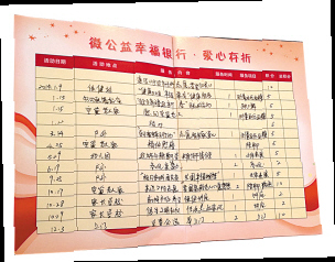 本报记者 沈孙晖 通讯员 史丽娜 许兴蕾 昨天下午,鄞州中河街道东城社区的40多位志愿者,兴冲冲地涌到社区“幸福银行”,每个人手里还拿着一本红色的“存折”。 原来,这是社区党支部“微公益·幸福银行”第一次爱心积分兑换日。“我们把一年来参加的公益活动登记在‘爱心存折’上,换成积分,到年底就用这些积分兑换社区提供的礼品。”来自东城水岸小区的任亚琴阿姨笑着说,“其实礼品不重要,重要的是为其他人做点事!” 退休医生又“坐堂” 266分,651本爱心“存折”中的最高分!听闻自己摘下“桂冠”,任阿姨既惊讶又开心。记者看到她“存折”上的“登折笔数”密密麻麻:慰问空巢老人,记5分;志愿服务献爱心,记5分…… 据悉,任阿姨今年60岁,是鄞州疾控中心的退休医生。她和其他七位志愿者,都是社区97岁高龄老人冯老太的“女儿”。据悉,老太因为子女平日工作较忙,只能独自在家。为此,8位“女儿”从周一到周五,轮班到冯老太家,为她剪头发、洗脚洗澡,陪其说话聊天,照顾吃饭午睡……而任阿姨排在每周五,她也成了老太的专职“健康顾问”。 此外,任阿姨每月第二个周三上午,会到社区健康管家工作室,义务为老人们测血压和血糖,提供健康咨询,每次有四五十人前来咨询,她笑言自己像“坐门诊”。 博士成了修理工 36岁的何鹏家住荣安和院,是南京东南大学机电专业的一名博士,目前在市出入境检验检疫局从事电器检测方面的工作。在一次爱心活动中,他告诉社区自己擅长修电器,有需要可以找他。 去年3月,社区举行学雷锋志愿活动,家电维修作为其中一个服务项目,何鹏受邀现场设摊。没想到“人气爆棚”,光登记就有五六十人。由于来不及现场维修,他干脆一批批拿回家“加班”,修完后送到社区再换一批修。 荣安和院一位何阿姨的落地扇坏了请他修,没想到等电扇修好了,她却“不认识”了。原来,何鹏见风扇罩坏了,自己掏钱买新的换上。这时,社区工作人员才知道,维修时遇到电熔、电板等零配件坏掉,他都是自掏腰包…… 你的幸福 我来存储 昨天下午,记者看到活动现场一张长桌上,摆着各种兑换的奖品:生日蛋糕、电影套餐、话费充值卡、新春礼包、时尚盆栽等,而每种奖品的标牌上,标着兑换“门槛”:一颗星至三颗星不等。 据悉,“爱心存折”200分以上,就是三星级志愿者;100分至200分为二星级志愿者,100分以下系一星级志愿者。大伙纷纷根据星级“对号入座”,围在桌前挑选对应的礼物。 “中国结好,挂家里喜庆!”该社区最老的党员,79岁的葛从礼是一星级志愿者,他挑了一个羊布偶、中国结的新春礼包,图个羊年吉利;一位俞阿姨兑换了一套学习用品,说给小孙子用。而积分最高的三星级志愿者任阿姨精挑细选后,没有选择“价格”最高的生日蛋糕,而是选了200元话费充值卡…… “幸福银行”提升幸福指数 据了解,东城社区党支部“微公益·幸福银行”从去年1月正式启动,如今已有651个“爱心账户”。 社区党支部书记张信娥告诉记者,平时志愿者的服务,会根据“积分细则”,具体量化记录在“爱心存折”上,比如利用特长开展培训,每一期培训计50分;邻里互帮互助,受居民好评的,每次计10分;拾金不昧、见义勇为等好人好事,根据情况每次计5至50分…… 为了回馈志愿者们,社区准备了这些小礼品作为“利息”。“我们希望以这种存储爱心,传递幸福的方式来肯定大伙的付出,同时也激励更多的人加入到志愿服务队伍中来,提高社区居民的幸福指数!”张书记说。
