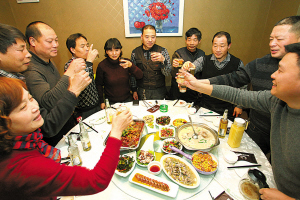 前日,海曙区月湖街道20名环卫工在镇明路上一家黑鱼馆免费享用丰盛的团聚餐。据盛园商圈党委介绍,这家黑鱼馆店主得知在镇明路及周边保洁的环卫工将在甬过年,就特地准备了两桌特色菜肴,以感谢他们在春节期间坚守路面清扫岗位。