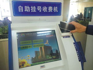 | 通过自助终端用手机进行医疗费用支付,整个支付过程仅需一两分钟———移动金融技术在医疗等诸多领域的应用将极大便捷了市民生活。(杨绪忠 摄) |
