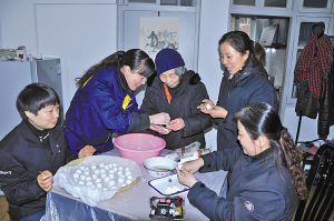 | “女儿”们和老人一起包汤园迎新。(通讯员 提供) |