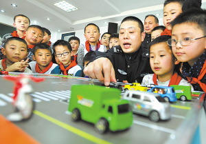 本报讯(记者严龙 通讯员张金星)昨天下午,由江东交警大队自创的中小学生交通安全教育互动模板首次在江东朝晖实验学校304班使用,深受师生们的喜爱。 互动模板长1.2米、宽0.9米,模拟一个典型的城市主要交通道路路口,上面红绿灯、行人安全岛等标志一应俱全,各式交通工具及行人模型更是应有尽有。主讲的俞振新警官表示,互动模板形象生动,对孩子特别有吸引力。 昨晚,江东交警大队利用江东区教育局建设的空中课堂,首次对7所学校一年级学生的近2千名家长举办远程交通安全教育讲座,这块互动模板再次登场,起到了良好的教学效果。 图为俞振新警官在江东朝晖实验学校304班给学生上课。 (严龙 俞泳 庄承婷 摄)