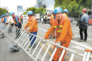 中山西路(解放路—孝闻街)交通导改 本报讯(记者王晓峰 通讯员石奇峰)昨天是交通导改实施后的第一个早高峰,由于通行车道减半,中山西路(解放路—孝闻街)这一段交通压力剧增,形成了“肠梗阻”现象。 据交警部门介绍,昨天中山西路(镇明路—孝闻街)段从上午8时开始,交通流量上升,直至8时50分才恢复正常。与以往相比,早高峰延长了20分钟。 “早高峰是属于‘潮汐’车流,由西往东的车流到这里时遇到瓶颈了,只能缓慢通行。”交警说,由于中山西路(解放路—孝闻街)段位于中心城区,作为主干道的它对于市民出行影响是巨大的。 此外,车道减少后,公交车靠站问题对于交通的影响更加巨大。昨天下午2时30分至3时30分之间,此路段又出现了车辆排队、通行缓慢的现象,很大一部分原因就是公交车站停靠港湾取消后,过往公交车只能在车道上停车上客下客。 交警告诉记者,中山路的交通导改工作还将持续下去,并且范围也会逐渐扩大,对于交通影响也将更加明显。目前交警部门对受影响路段的红绿灯进行了调整。交警提醒市民,改走永丰路、通途路、柳汀街等。 上图:昨天上午,海曙交警组织施工人员对中山西路(镇明路-孝闻街)段实施交通导改。(胡建华 石奇峰 摄)