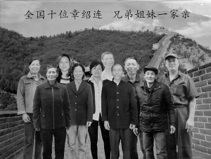 生活中,碰上同名同姓人,是缘分,往往有种特别的亲切感。现在网络发达了,可以方便地查询与自己同名同姓者的信息,但身处异乡的“另一个我”,长什么样,过得如何,你知道吗? 象山石浦的旅游达人章绍连就做了一件稀罕事:他花了数年时间,行程上万公里,逐一寻访到全国另外9个叫“章绍连”的人,还合成了一张“全家福”。 近日,记者在老章的家中,看到了这幅全国10位章绍连“一家亲”的合影,背后是长城图案。老章说,他分别给各地的9个章绍连拍了照,回到象山后,请人用电脑合成的。 今年69岁的章绍连是象山的旅游形象大使,30多年来他行程100多万公里,足迹遍中国。“寻找同名同姓者,始于心中的一个情结。”老章说,他这个名字不太常见,以前老人也没跟他讲取名的“讲究”,打小他就存着一份好奇。 五六年前,他偶然间获知,象山丹西街道有个农民,跟他同名同姓,便开车前去拜访。对方获悉他的来意,很惊讶,留他吃饭。此后,两家人还成了朋友,第二年过年时,对方还带着一家人到老章家拜年。 “那时候,我就想着,要把全国与我同名同姓的人都找到,见一见。”老章说,他通过公安部门的朋友查询到全国叫章绍连的,加上他一共有10个,5男5女,居住在江西、湖南、重庆、贵州、浙江等5个省,最年长的已80高龄,年纪最小的也有30多岁。 从2012年开始,老章驾着他的车,利用自驾游的机会,专程前往拜访“另一个我”。这其余的8个章绍连,也都是农民,有的所住村庄非常偏僻,导航都导不到,老章只能一路问过去。在江西新余,他来到一个村子找一名女的章绍连。得知来意后,对方感觉不可思议,以为遇到了骗子,老章只好掏出身份证“自证清白”,方才消除误会。 每次寻访同名同姓者,老章都会带上饼干、饮料等礼物,到对方家里坐一坐,了解生活情况,有时还被对方拉住吃一顿饭。住在重庆忠县一个山村中的章绍连,年逾八旬,孤身一人,生活很困难。老章见了,不由得心生苦楚,临走时,还留下了几百元钱。 前后花了七八年时间,章绍连说,他终于完成了自己这一特殊的心愿。他说,现在逢年过节时,外地的章绍连有时会打电话给他,“每到这个时候,总会涌起一种别样的思绪。”章绍连说,他和这些异乡人非亲非故,因为姓名串联起特殊的缘分,这种感觉很奇妙,“我希望,远方的‘另一个我’能够幸福、安宁地生活。” 今年“五一”前夕,章绍连驾着他的旅行车,再一次踏上了前往大西北的旅途。他说,如果还有新的章绍连出现,“我一定再去拜访”。 图为老章(右一)制作的“全国一家亲”合影。(余建文 翻拍)