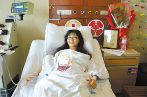 | 完成造血干细胞采集的陈妍。(赵蔚 摄) |
