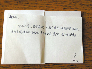 | 受捐者送给陈妍的小卡片。 |